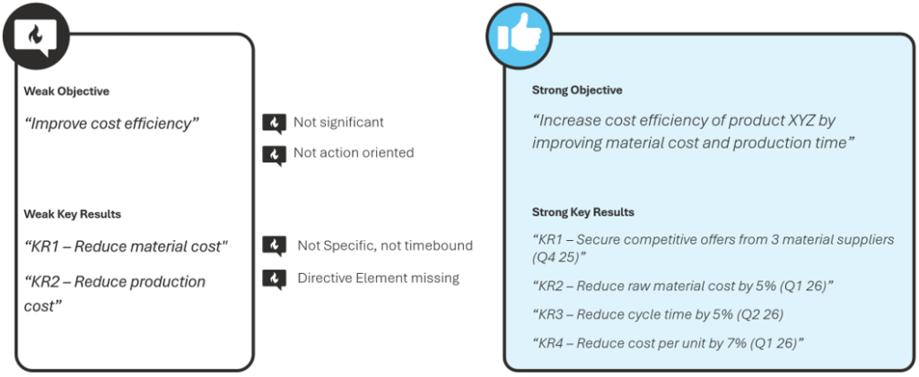 The following shows an example for a weak and an improved OKR.